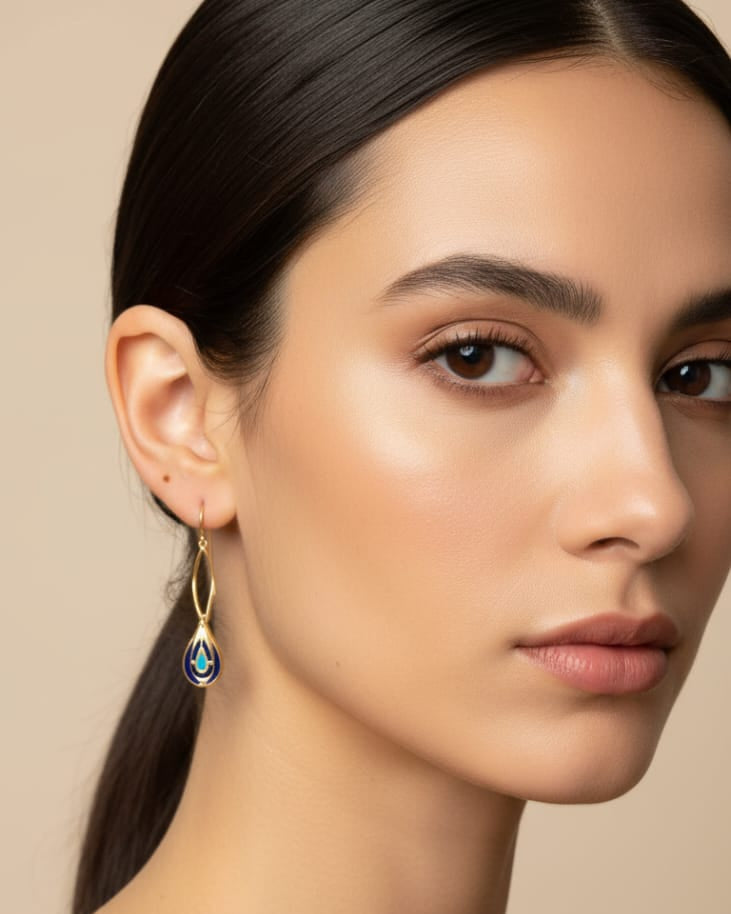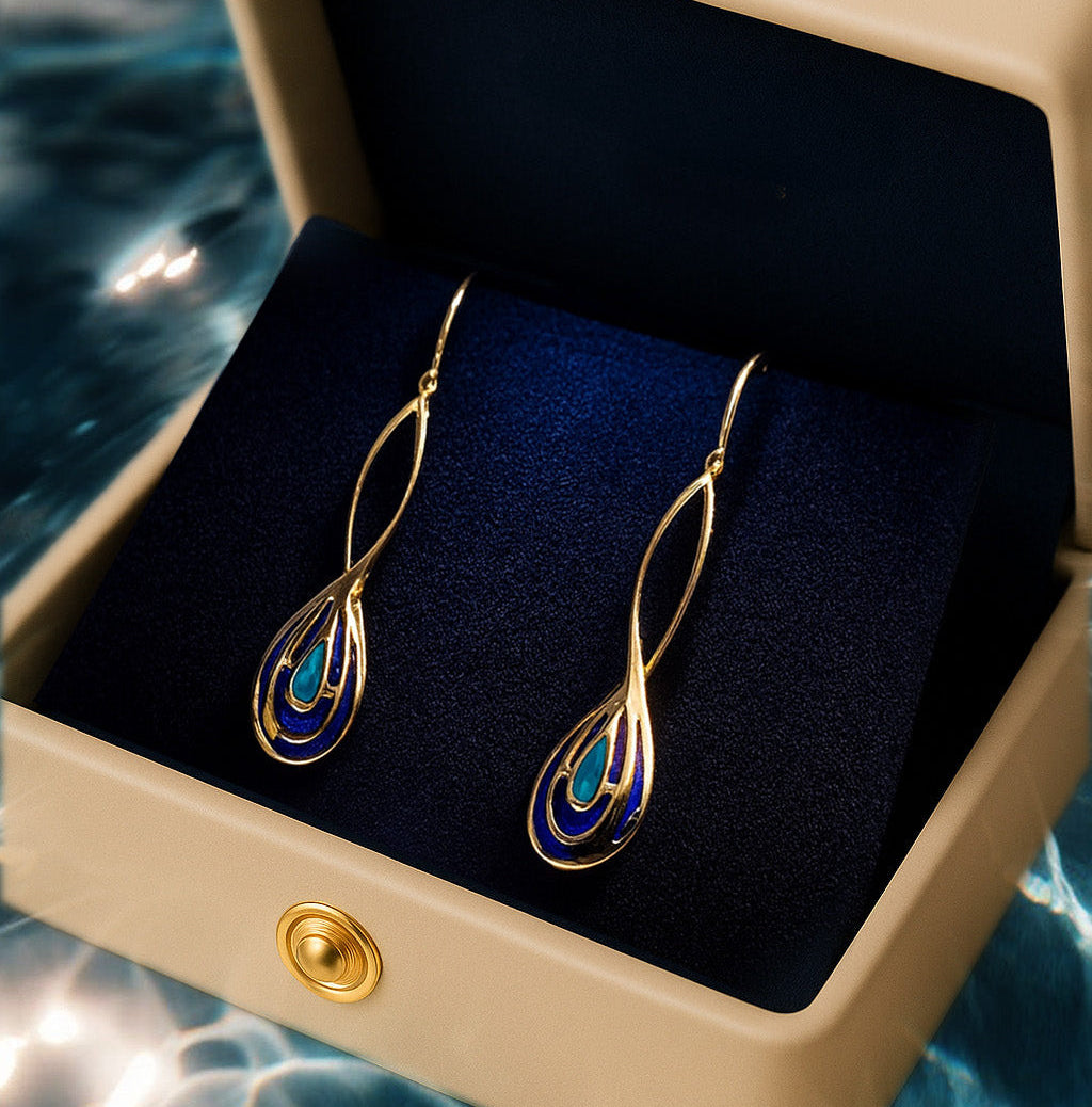 A sculptural 18k gold teardrop shaped by the curve of a rising wave. Light glides across its surface like water in motion, echoing the quiet strength of the sea. A pure, fluid form that holds emotion, memory, and renewal.